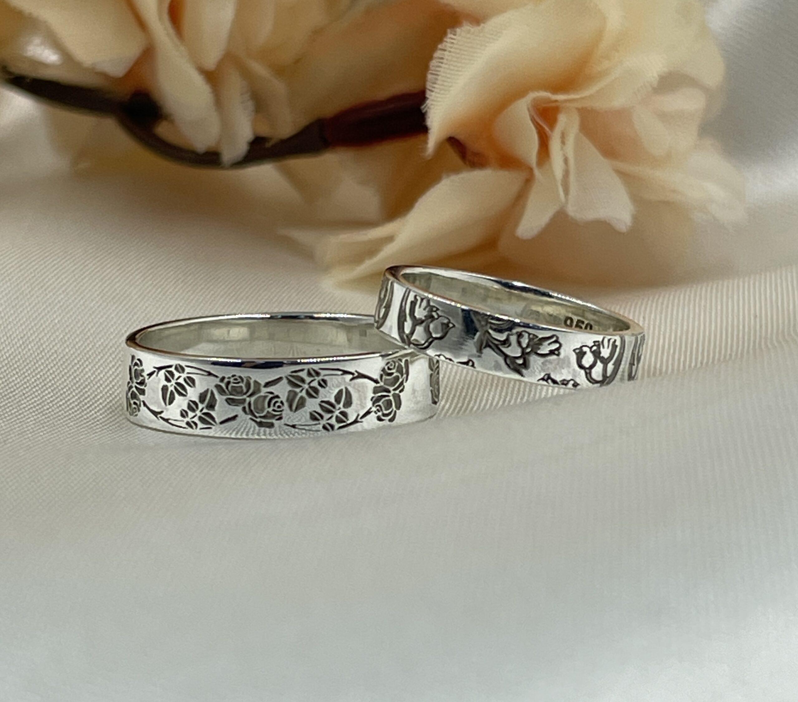 •  Los anillos llevan un detalle de grabado láser