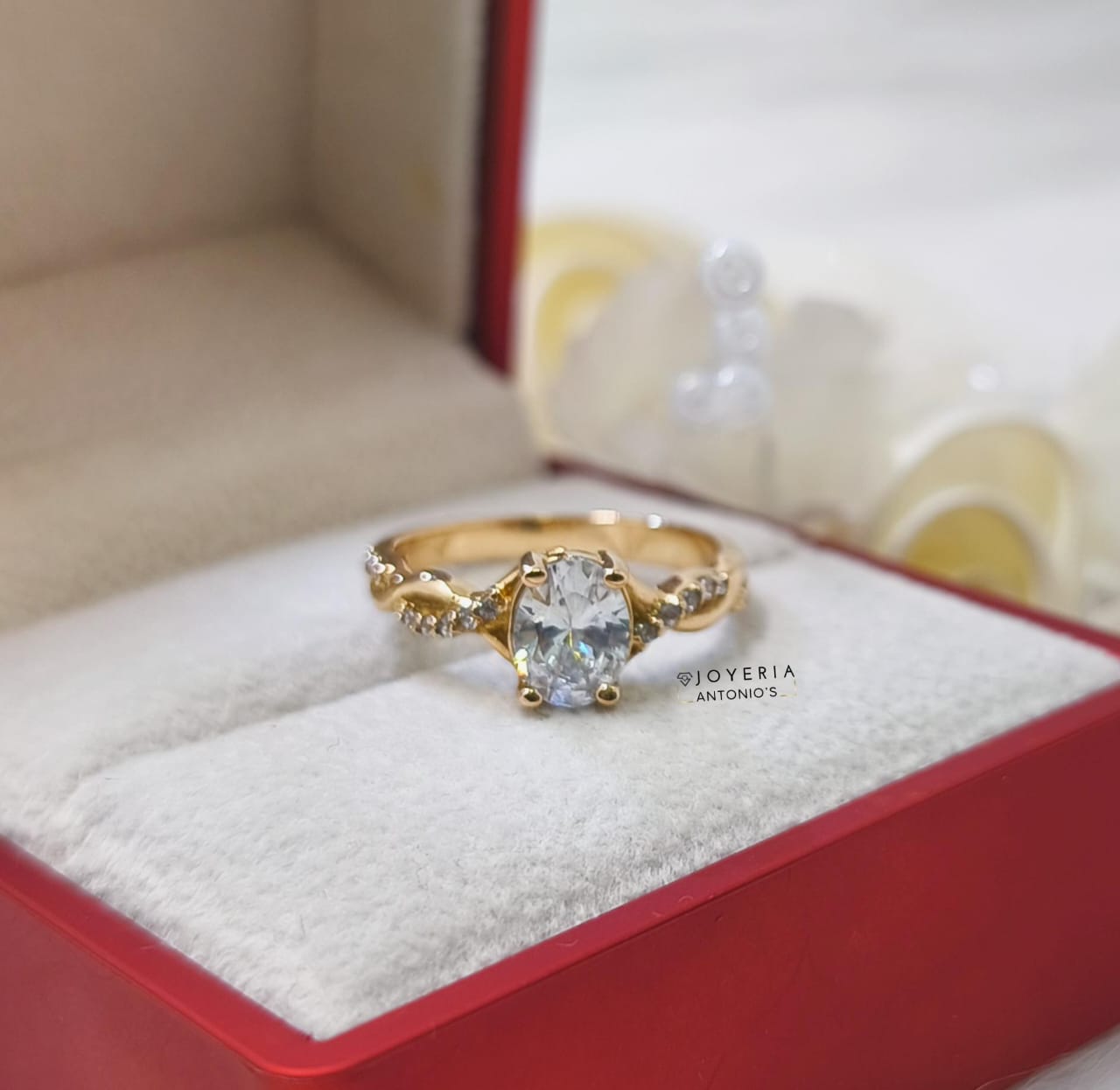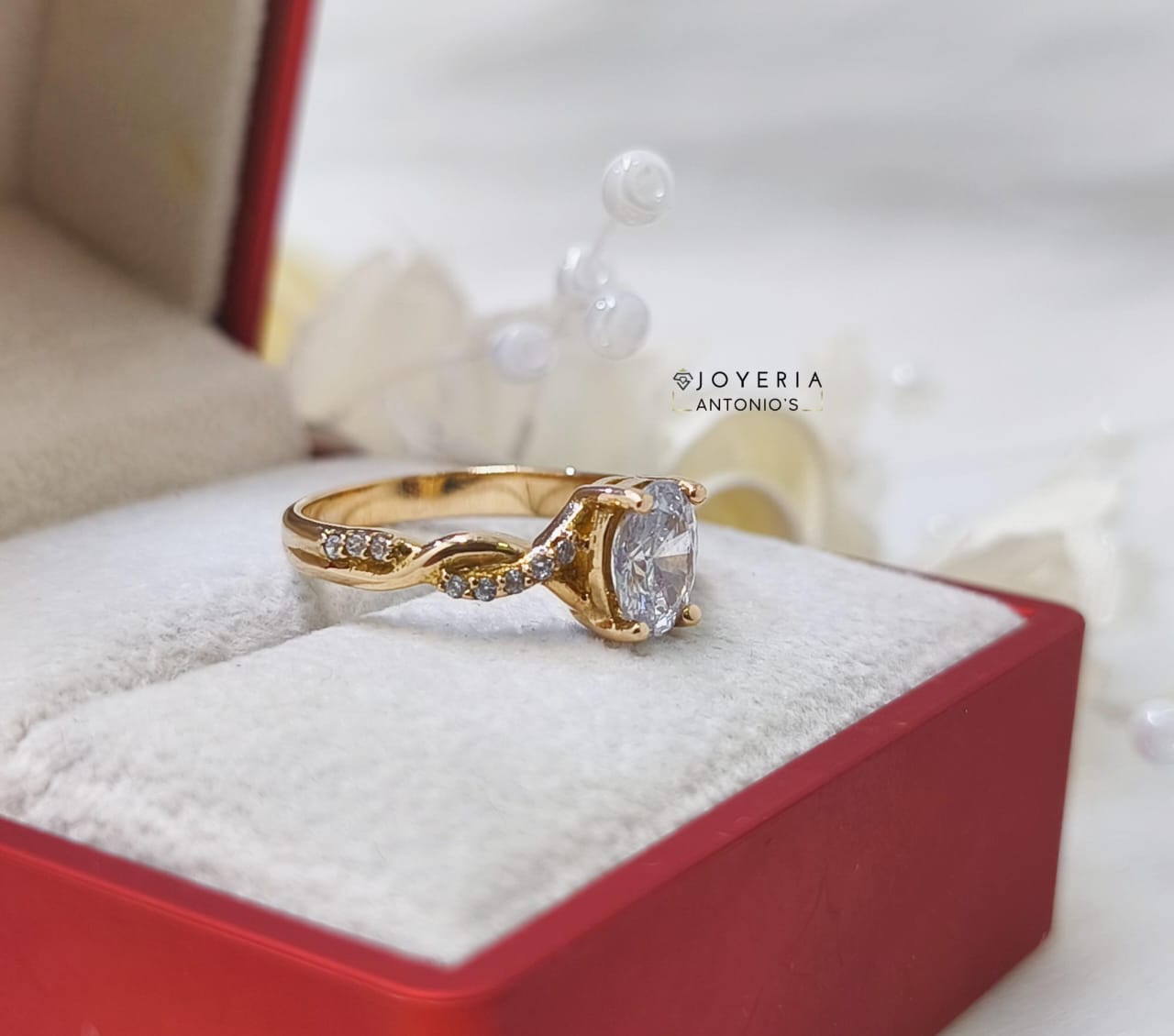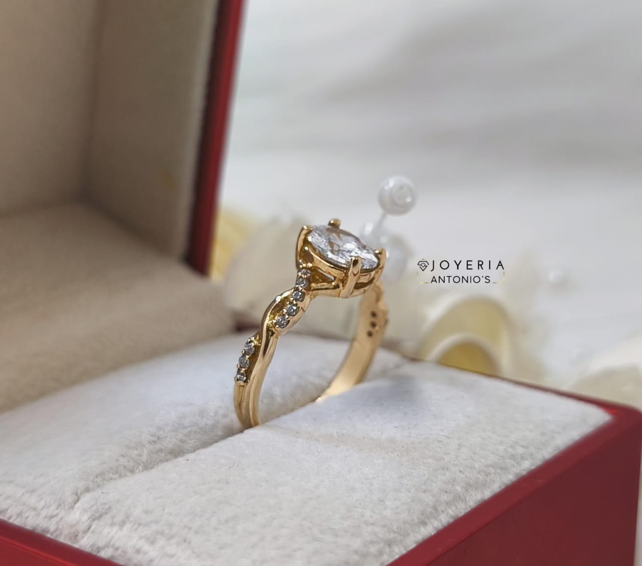 Sortija elegante elaborado en oro 18k. Piedra Swarovski.